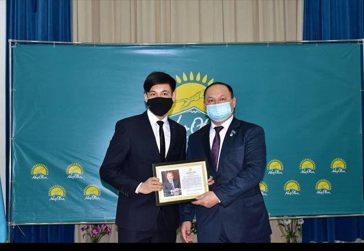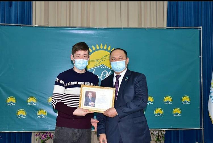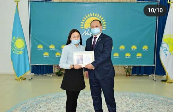 Бүгін Елбасымыз, Nur Otan партиясының төрағасы Н.Ә.Назарбаевтың алғыс хатымен 3 курс студенті Сағынғалиев Ермахан марапатталды.