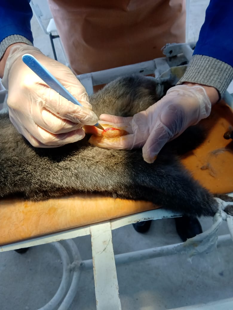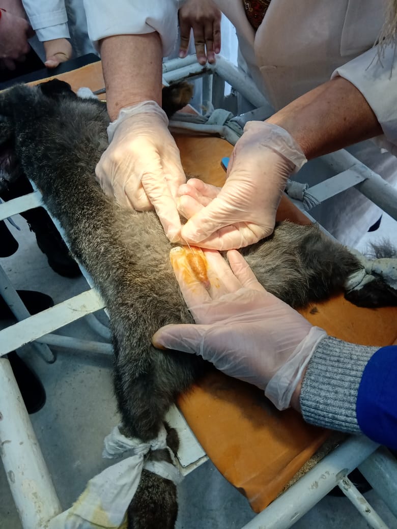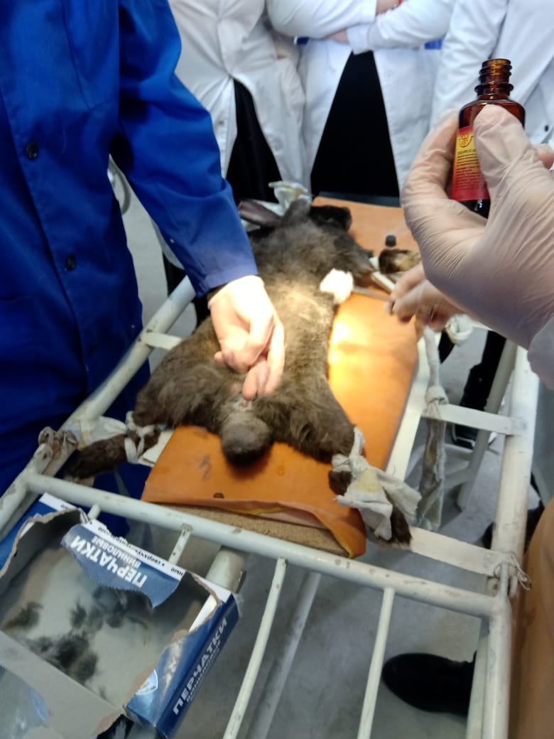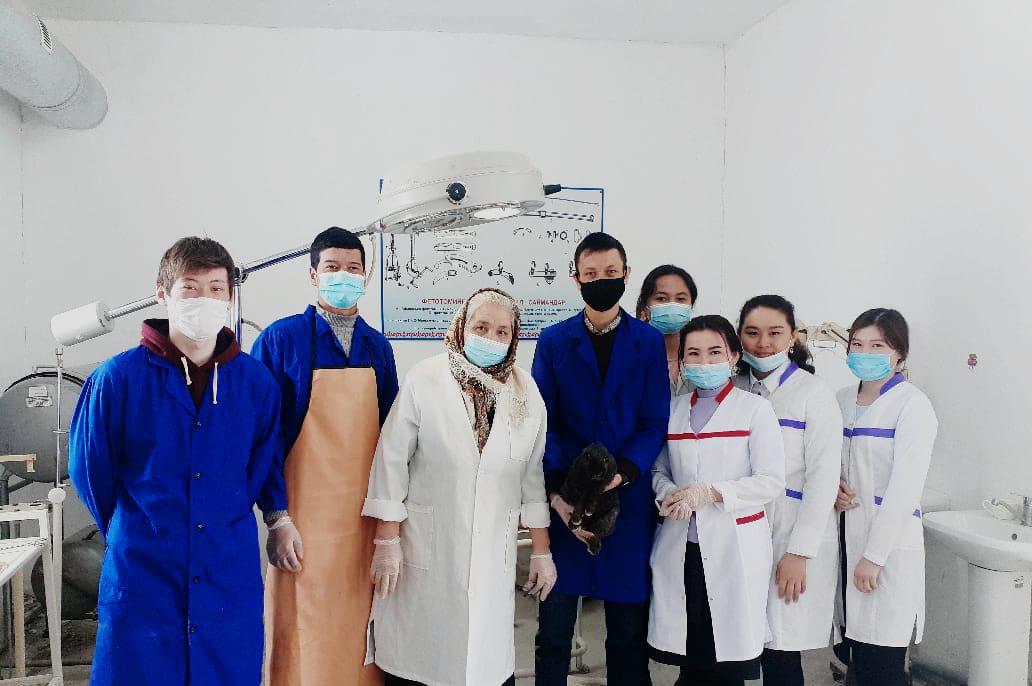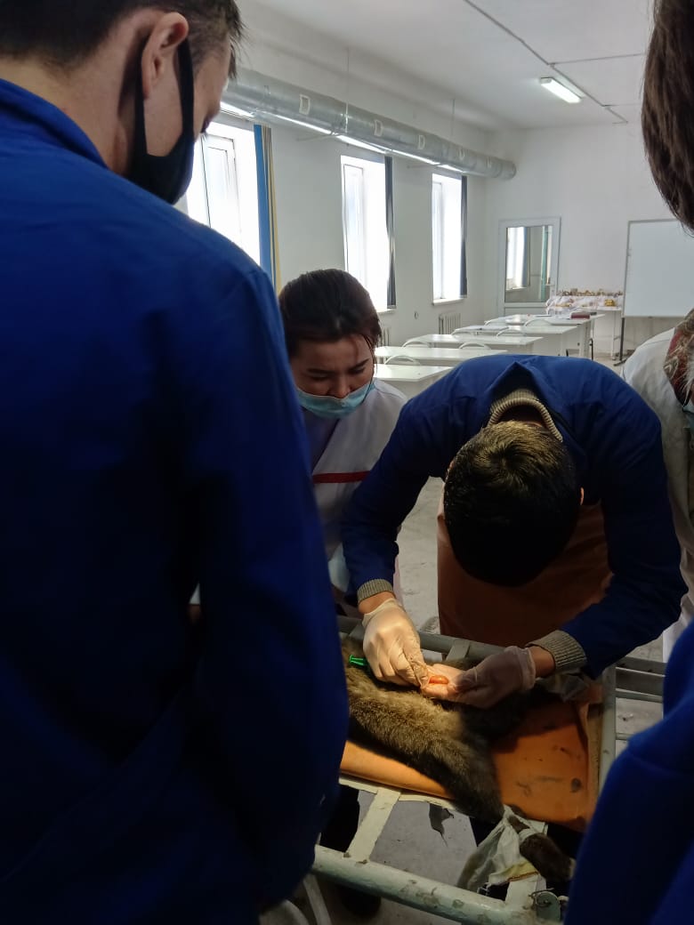 Кәсіптік бағдар беру мақсатында аудандық ветеринария саласының майталманы, зейнеткер Гапуова Назира өзінің мамандығының шеберлігін насихаттауда “Ветеринария” мамандығының өндірістік оқу шеберлерімен бірлесіп, студенттерге “Қоянды пішу” (кострация) жұмысын көрсетті.