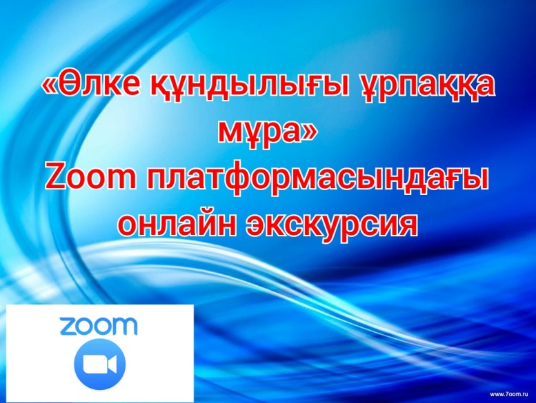 8 сәуір күні колледж студенттері Zoom платформасы арқылы Кеңес Одағының Батыры Ә.Молдағұлова атындағы облыстық мемориалды музейінің «Өлке құндылығы ұрпаққа мұра» атты онлайн экскурсиясымен танысты.