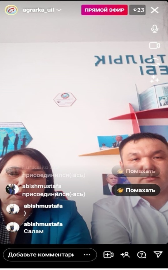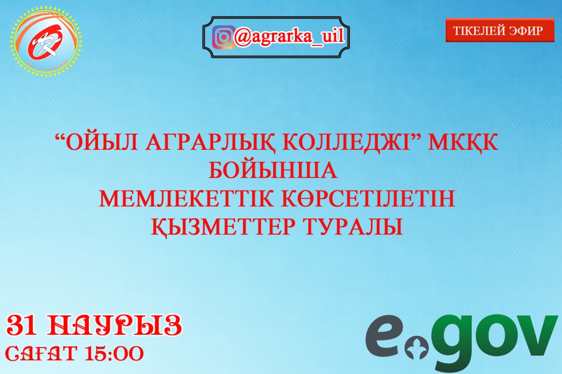 Наурыз айының 31-і күні инстаграм желісі арқылы колледжімізде көрсетілетін мемлекеттік қызметтер бойынша түсіндіру жұмыстары өткізілді. Сұрақтар қойылып жауаптар берілді.