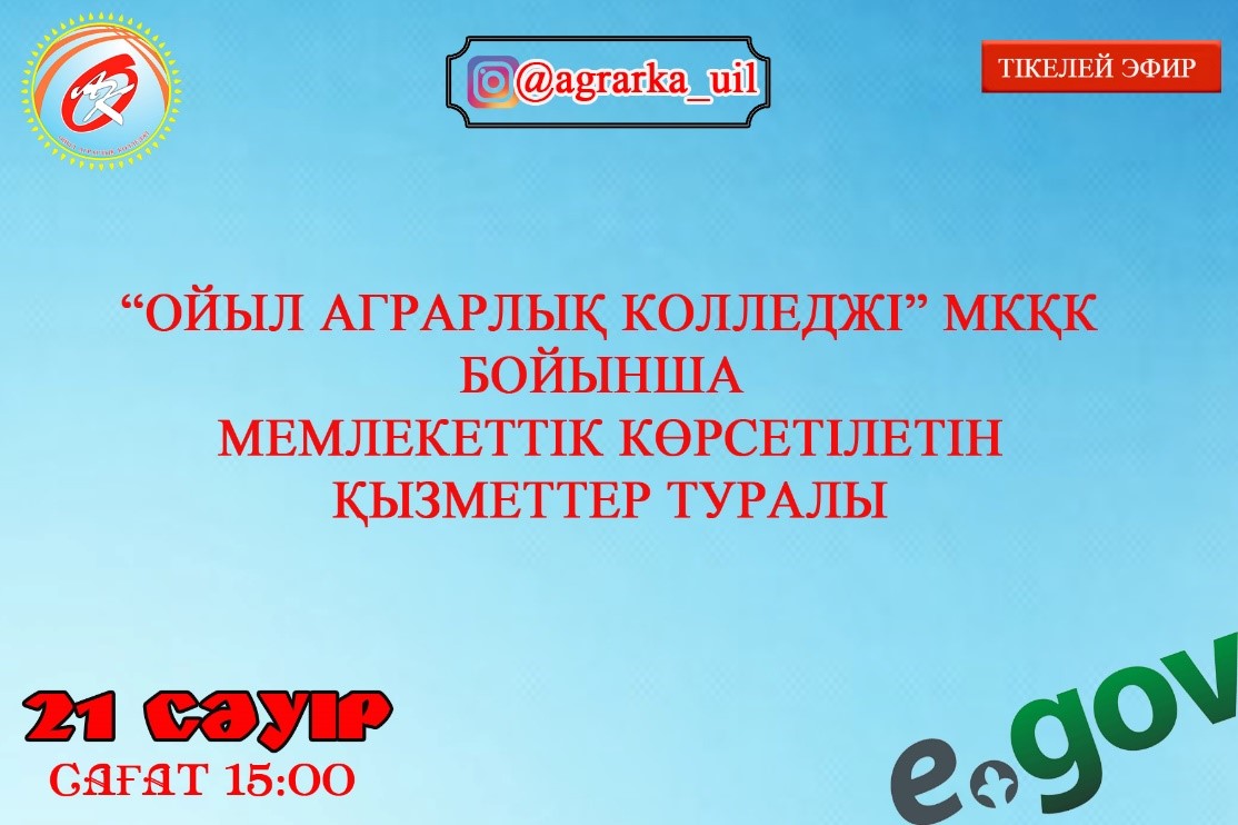 Сәуір айының 21-і күні колледжде көрсетілетін мемлекеттік қызметтер бойынша түсіндіру жұмыстары жүргізілді. Директордың оқу ісі жөніндегі орынбасары Н.Қ.Ағыбаев колледжде көрсетілетін Білім беру ұйымдарында білім алушыларға академиялық демалыс беру жөнінде түсіндірме жұмыстарын жүргізді.